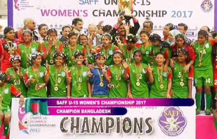 কিশোরবাংলাপ্রতিবেদন: সাফ অনূর্ধ্ব ১৫ মহিলা ফুটবলে চ্যাম্পিয়নের গৌরব অর্জনের পর প্রথমবারের মতো সংবর্ধিত হলো খেলোয়াড়রা। সংবর্ধনা পেয়ে উচ্ছ্বাস প্রকাশ করে অনূর্ধ্ব ১৫ মহিলা জাতীয় ফুটবল দলের অধিনায়ক মারিয়া মন্ডা।