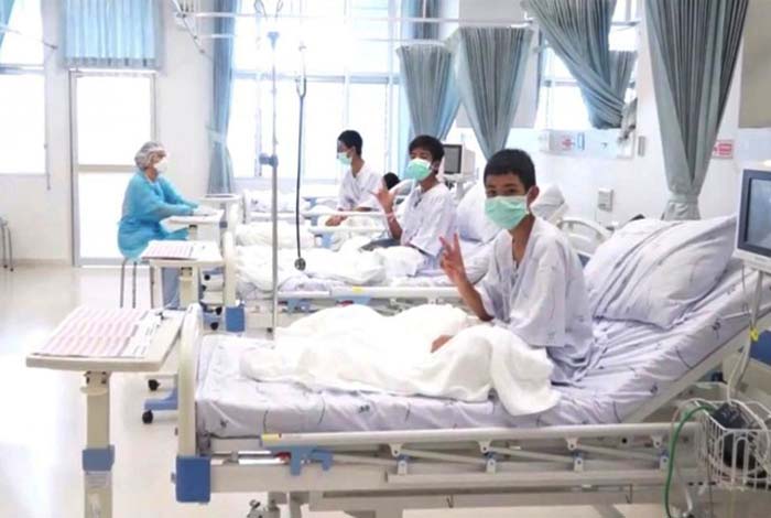 কিশোরবাংলাপ্রতিবেদন: হাসপাতাল থেকে প্রকাশিত ভিডিও ছবিতে প্রথমবারের মতো দেখা পাওয়া গেল গুহা থেকে উদ্ধার পাওয়া থাই কিশোর ফুটবলারদের।