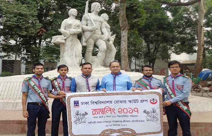 কিশোরবাংলাপ্রতিবেদন: ঢাকা বিশ্ববিদ্যালয় রোভার স্কাউট গ্রুপের সেবা স্তরের চারজন রোভার স্কাউট নরসিংদী সদর থেকে মৌলভীবাজার সদর পর্যন্ত ১৫০ কিলোমিটার পথ পায়ে হেঁটে পরিভ্রমণ করতে যাচ্ছে ।